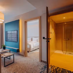 115 rum i sofistikerad stil och 118 bekväma, stora familjeappartement med balkong. De harmoniska rummen är inspirerade av havslandskapet. Appartementen består av ett sovrum och ett vardagsrum med bäddsoffa. Dessutom ligger appartementen i den icke kategoriserade delen av hotellet. Enkelrum är dubbelrum för enskilt bruk.