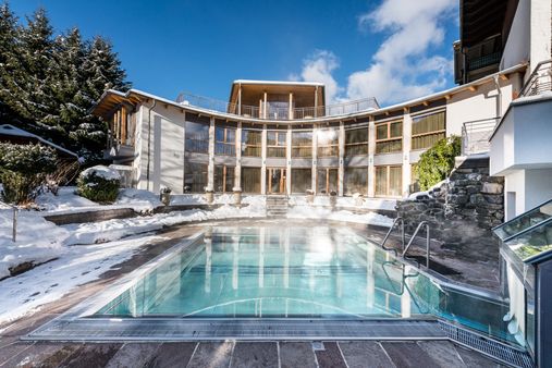 Spa Silencium: Välkomnande vuxenavdelning, saltgrotta, ångbad, biosauna med alpörtsdoft, vilorum med utsikt över atriet och omgivande bergstoppar, sol- och liggterrass, 2 gånger i veckan saltpeeling, fruktiga snacks, behandlingar och massage (mot avgift).