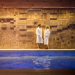 - Användning av wellnessområdet med inomhus- och utomhuspool, solterrass, saunavärld med sju olika bastur, saltbad, sanarium, infraröd kabin och vilorum med örtteer